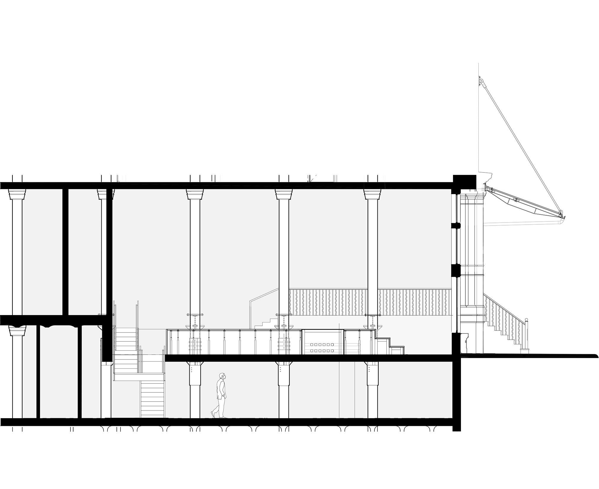 The project began with resetting the concrete retail floor elevation, lowering it five feet to align it with the sidewalk grade on Mercer Street. This careful adjustment reoriented the space toward Mercer, acknowledging its emergence as an active retail corridor and strengthening its connection to the street.
