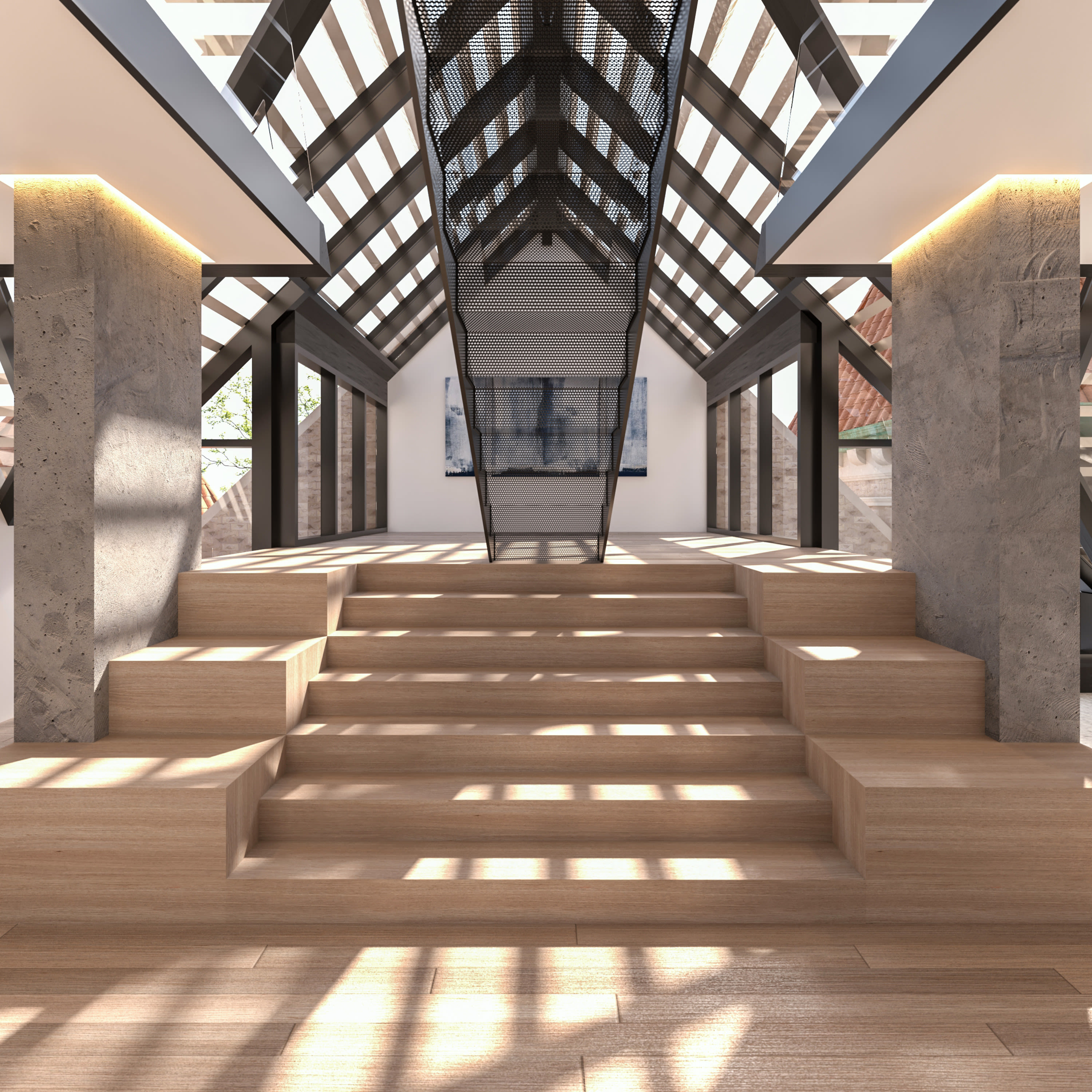 The design, approved unanimously by the Landmarks Preservation Commission upon its first public hearing, marries the historical with the contemporary, balancing the solid masonry elevation with a glass and steel addition. A 5,000 SF sanctuary space at grade featuring the original stained glass along its perimeter will house the congregation, and another 5,000 SF of community space will be located below grade. Above the sanctuary, seven apartments ranging in size from 1,200 SF to 3,500 SF will rise in a form evocative of the original sanctuary’s gabled roof, covered by terra cotta screens, a modern application of the original, historic roofing material.